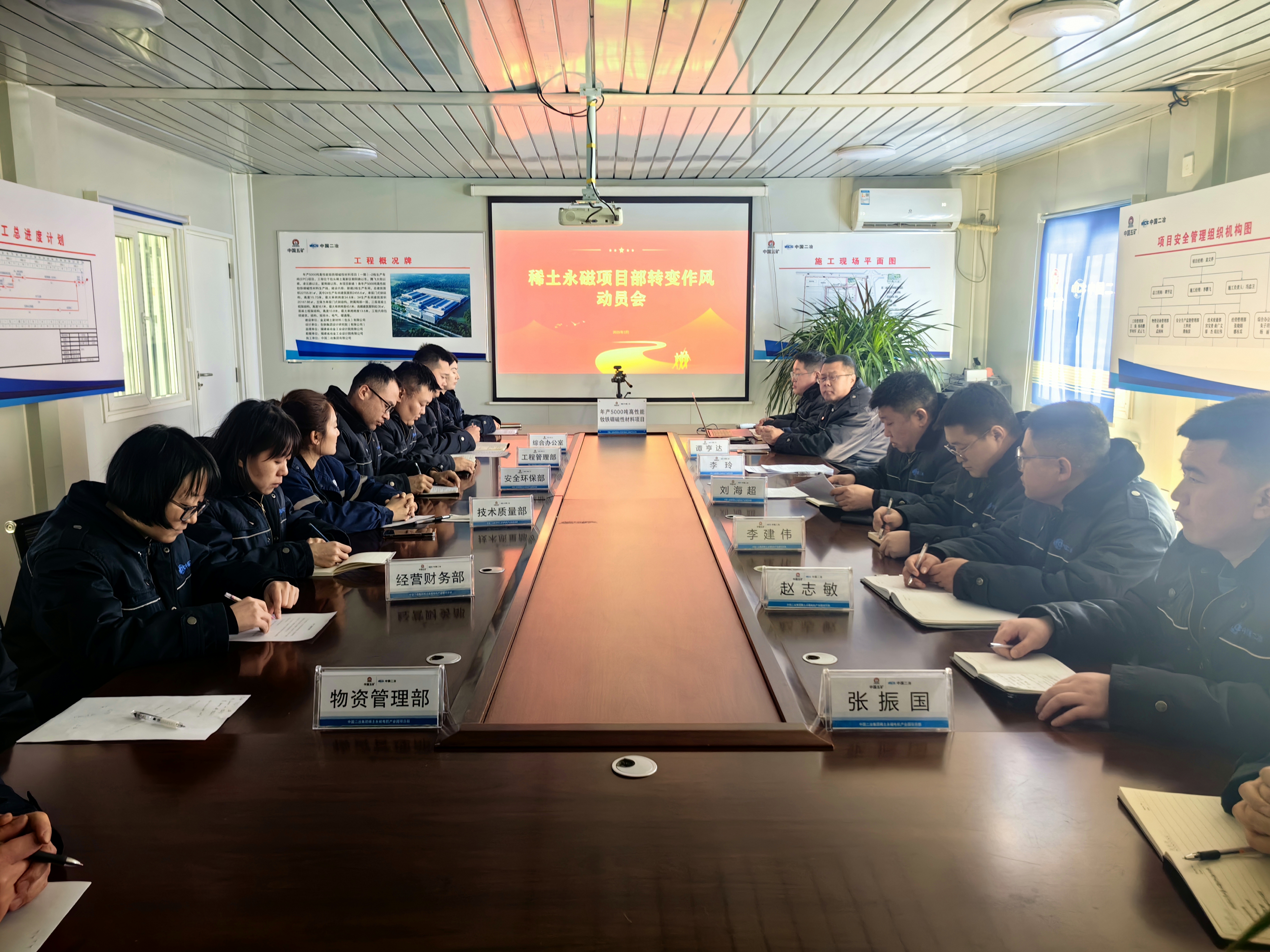 3月17日,城建分公司稀土永磁項目部召開轉變作風動員會,強力推出“六個堅持”加強作風建設,細化崗位職責,舉一反三查找不足,提升工作質量,樹新風、立正氣,鼓足干勁實現全年目標。