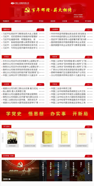 5月4日,公司黨群工作部特別策劃的“百年輝煌·薪火相傳”專題網頁正式上線,為深入學習宣傳貫徹習近平新時代中國特色社會主義思想,全面貫徹落實中國五礦、中冶集團黨史學習教育動員部署會相關要求,號召全體黨員干部學黨史、悟思想、辦實事、開新局,不斷增強抓好學習教育的思想自覺、政治自覺和行動自覺,高標準高質量完成學習教育各項任務增開了新渠道。專題網站下設9個欄目,分別是“重要論述”“上級精神”“學黨史”“悟思想”“辦實事”“開新局”“黨史書架”“百年輝煌·影像”“百年輝煌·百花齊放”欄目。專題網站旨在打造思想引領、政策解讀、信息傳遞、成果展示、經驗分享等為一體的黨史學習教育網上信息平臺,引導公司廣大黨員干部將思想和行動統一到中國二冶黨委部署上來,切實做到學史明理、學史增信、學史崇德、學史力行,一步一個腳印扎實推動公司各項事業向前發展,以優異成績迎接建黨100周年!