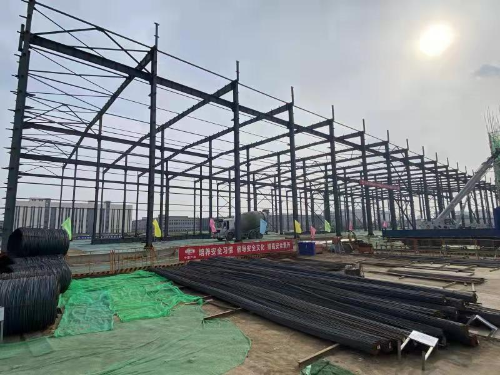 在全長171.6米,寬59.6米的1#車間施工現場,獨立基礎+輕鋼結構是本工程開局的重頭戲。項目部針對基底設計標高-4.000米,基底換填深度達-5.600米,時間緊任務重,質量要求高,施工難度大等不利因素和嚴峻挑戰,迅速組織技術人員進行技術攻關,制定詳盡的技術方案,在做足做細保溫防寒準備工作后,項目部克服草原鋼城春寒料峭的惡劣環境,掀起“黨旗飄揚、黨徽閃光”行動暨“奮戰120天,獻禮建黨百年華誕”勞動競賽,大干20天,順利完成1#車間混凝土基礎短柱澆筑,工程取得重大突破。3月15日,第一批鋼結構構件運抵施工現場,鋼結構安裝正式啟動,首根16米高鋼柱一次吊裝成功,帶有MCC“中國二冶”標識的彩旗在鋼柱頂端迎風飄揚,項目部全體職工歡呼雀躍,久違的笑容、堅定的信心在施工現場歡騰蕩漾。在“五一”這個禮贊勞動、致敬勞動者的日子里,項目部全體職工弘揚勞動精神、勞模精神,堅守一線,拼搏奮斗,勇攀高峰,捷報頻傳,1#車間鋼結構安裝完成,吊車梁安裝完成,具備彩板安裝條件,施工速度一次又一次刷新,讓筆者看到了新時代勞動者最美的風采。