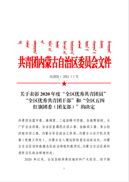 中國二冶團委榮獲2020年度內蒙古自治區和中冶集團“五四紅旗團委”榮譽稱號