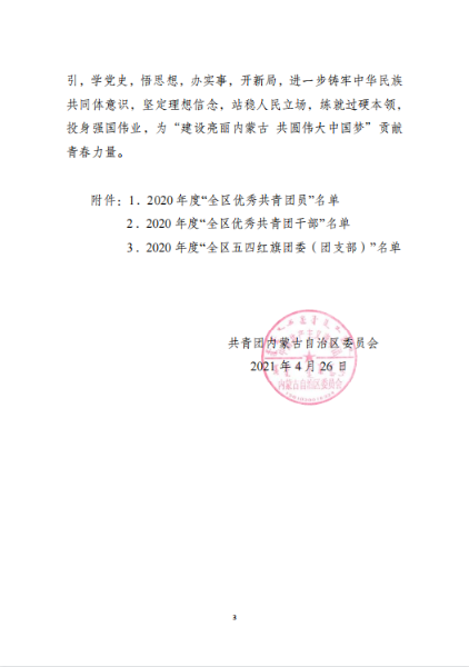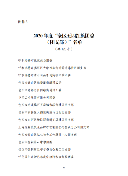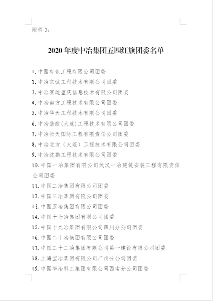 五四青年節前夕,共青團內蒙古自治區團委、中冶集團團委分別發布表彰決定,授予中國二冶團委“2020年度五四紅旗團委”榮譽稱號,同時,公司團委被共青團包頭市委員會2020年工作考核等次評定為“實績突出”。