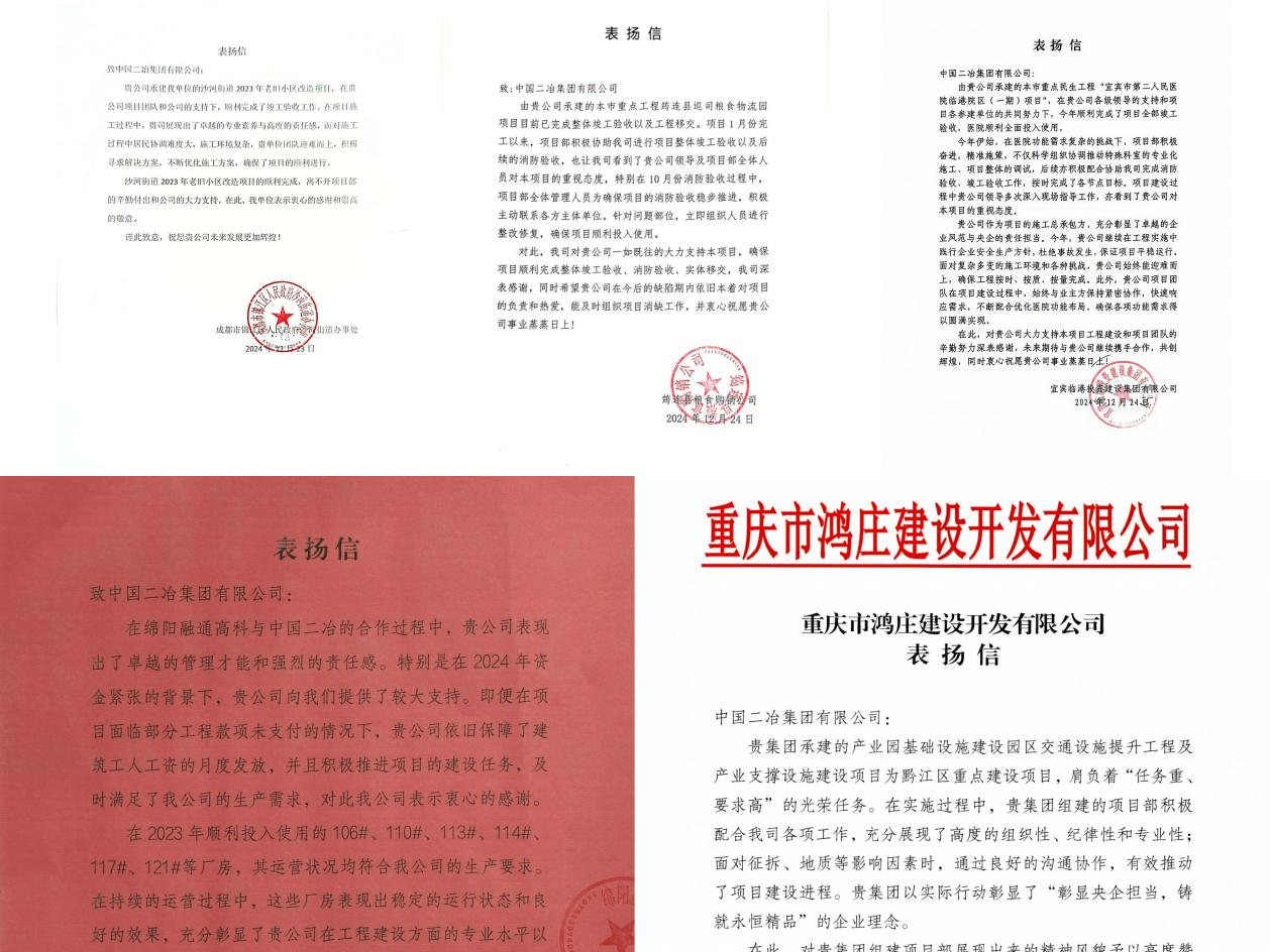 這一封封表揚信,不僅是對中國二冶優(yōu)質(zhì)高效地推進各項工作的充分肯定,更是對項目管理團隊優(yōu)良作風(fēng)的認可。接下來,各項目管理團隊將持續(xù)用行動踐行初心使命,切實做好各項目后續(xù)工作,為地方經(jīng)濟貢獻央企力量。