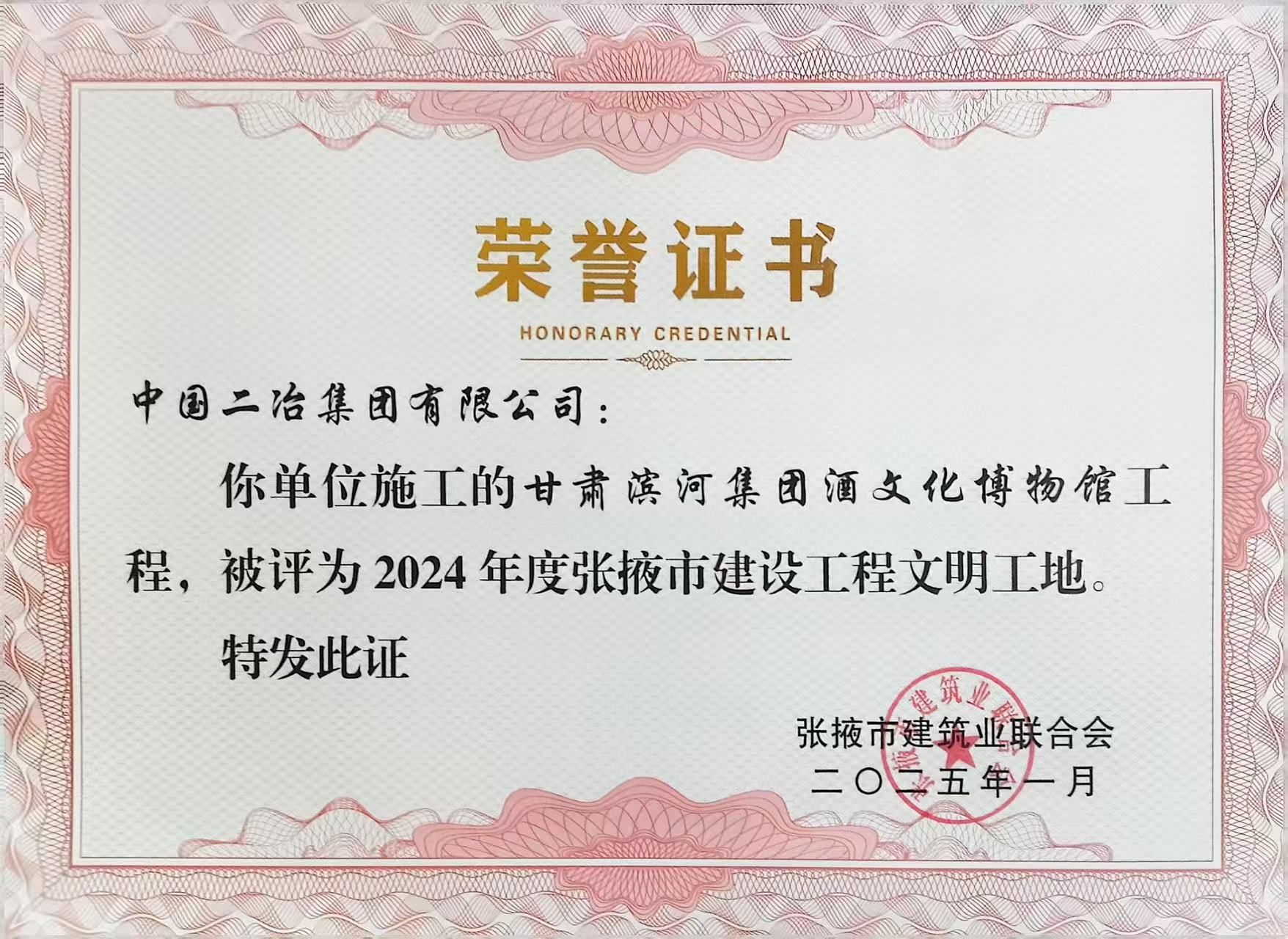 甘肅濱河集團酒文化博物館項目位于甘肅省張掖市,建筑面積 1.2萬平方米,自2024年7月開工以來,項目團隊便立下創獎目標,積極籌備,全體人員秉持 “兩個文明一起抓” 的理念,將創建文明工地作為工作重點。以平安工地建設工作為主要抓手,以“底線管理”的原則,落實安全、文明生產主體責任,將工程質量管理、安全生產管理和“文明工地”創建活動融入到項目建設總體部署中,切實保證了項目的和諧穩定與順利推進。?