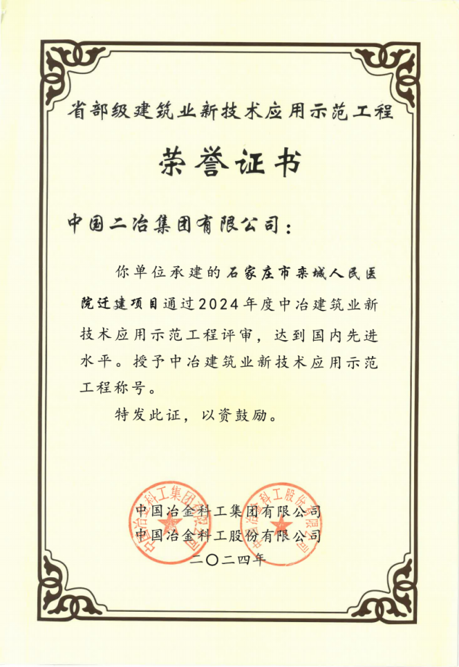 近日,由中國二冶承建的G59呼北高速湖南省新化至新寧段項目、石家莊市欒城區(qū)人民醫(yī)院遷建項目、西安地鐵15號線一期工程3標段一工區(qū)工程,被評為“中冶建筑業(yè)新技術應用示范工程”,其新技術應用與技術創(chuàng)新水平被認定為國內領先水平。