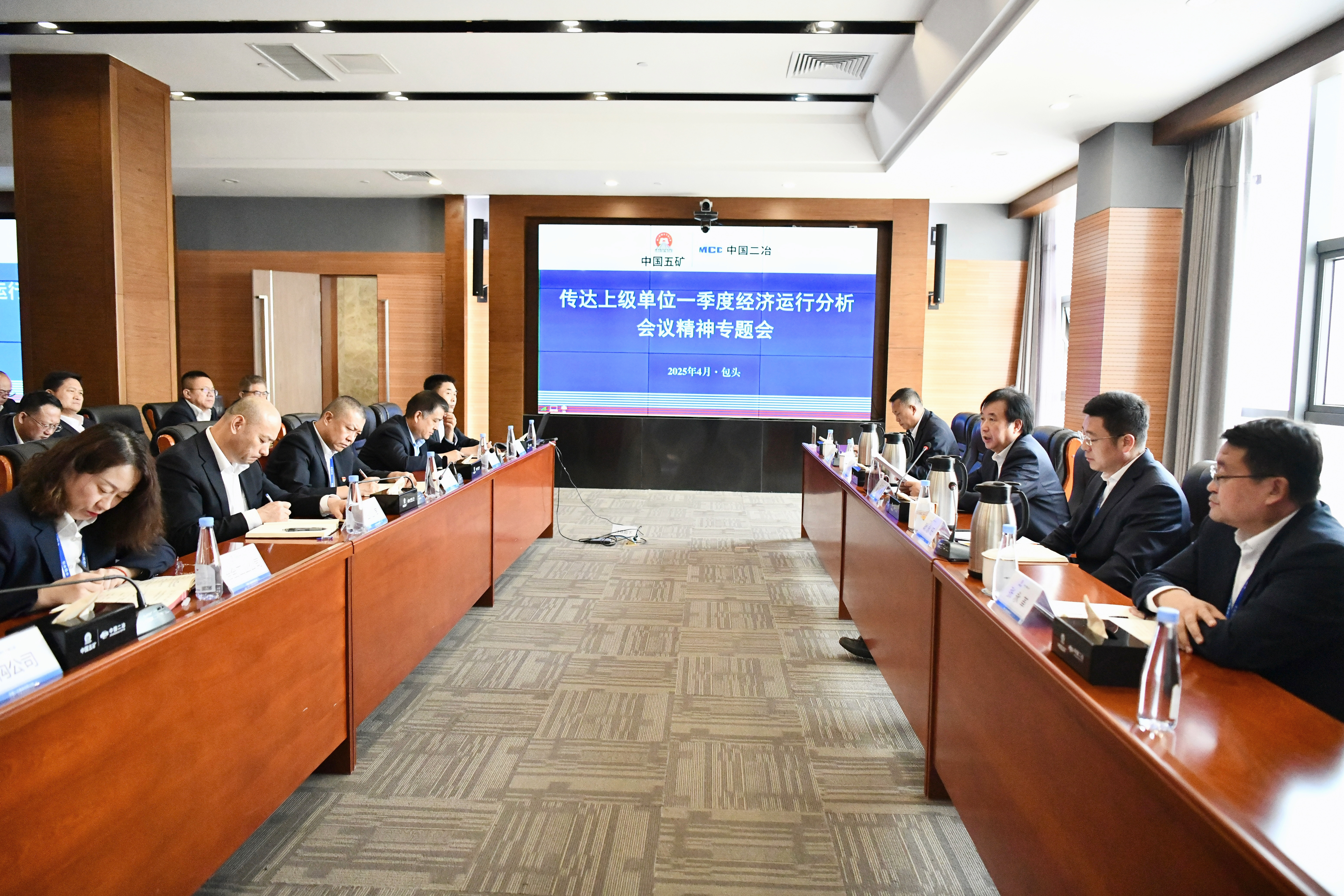 會議分別傳達了中國五礦黨組書記、董事長陳得信在中國五礦一季度經營績效對標對表分析會上的講話精神和中國五礦黨組成員、副總經理、中冶集團董事長中國中冶黨委書記、董事長陳建光在中國中冶一季度運營分析會上的講話精神。