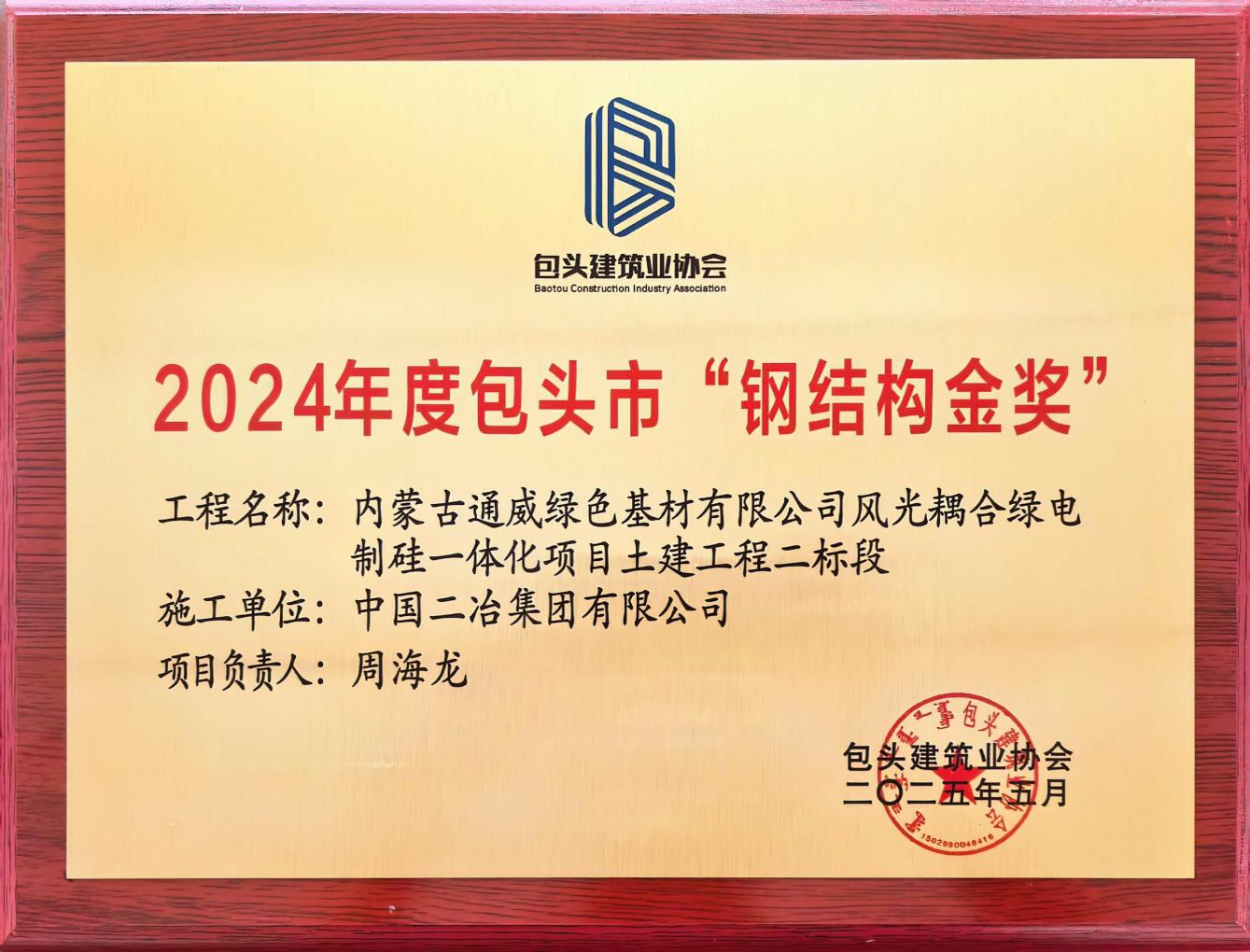 近日,包頭市建筑業協會公布獲獎名單,中國二冶承建的內蒙古通威綠色基材有限公司風光耦合綠電制硅一體化項目、內蒙古石拐區風電裝備制造產業園標準化廠房項目榮獲包頭市“鋼結構金獎”;內蒙古固陽縣秦長城國家文化公園項目榮獲2024年度包頭市建筑工程“裝飾裝修獎”。