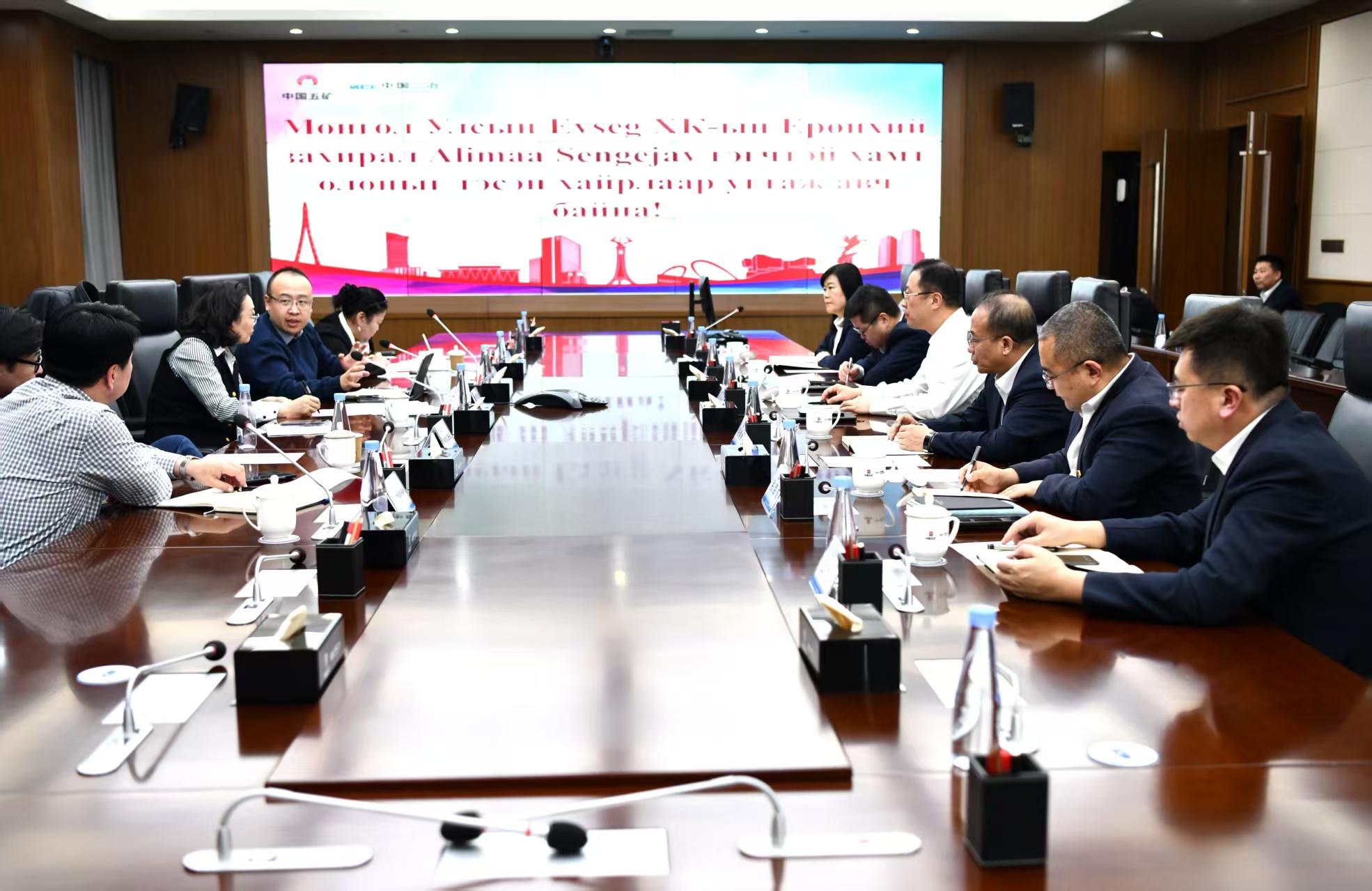 蒙古國Evseg集團副總С.Дэгсмаа,法務經理Н.Баярмагнай ;中國二冶董事會秘書、國際公司總經理張繼勇,總部及分公司相關負責人程俊、張海成、杜海玲、白志廣等相關人員參加會見。