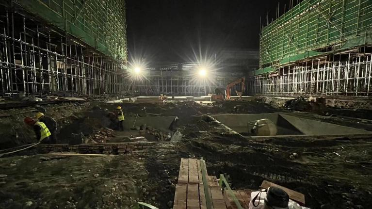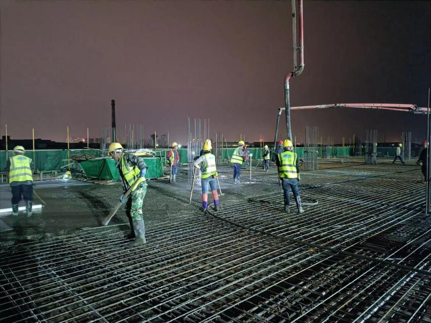 夜晚,山寒水冷,走進(jìn)資陽騮馬新村安置房項(xiàng)目,只見塔吊林立,大型挖掘機(jī)正在開挖作業(yè),建筑工人在工作崗位上緊張忙碌,綁扎鋼筋、支設(shè)木板,現(xiàn)場一片熱火朝天的景象。該項(xiàng)目全體人員充分發(fā)揮迎難攻堅精神,不等不靠,對照總體工期安排和當(dāng)前施工進(jìn)度,科學(xué)倒排工期,嚴(yán)格節(jié)點(diǎn)管理,強(qiáng)化人員分工。在確保項(xiàng)目安全質(zhì)量的同時,抓住夜間人員稀少、交通流量小的良好機(jī)會,抓緊組織人員,展開對急難險重任務(wù)的突擊作業(yè),確保每個作業(yè)面“飽和式”施工。分公司領(lǐng)導(dǎo)班子成員帶頭下沉至一線,實(shí)時管控現(xiàn)場進(jìn)度,確保天天有進(jìn)展、周周有變化。機(jī)關(guān)各部室則成立現(xiàn)場督導(dǎo)檢查小組,聚焦施工一線,總結(jié)現(xiàn)場進(jìn)展,解決實(shí)際問題,梳理剩余任務(wù),為施工生產(chǎn)保駕護(hù)航。