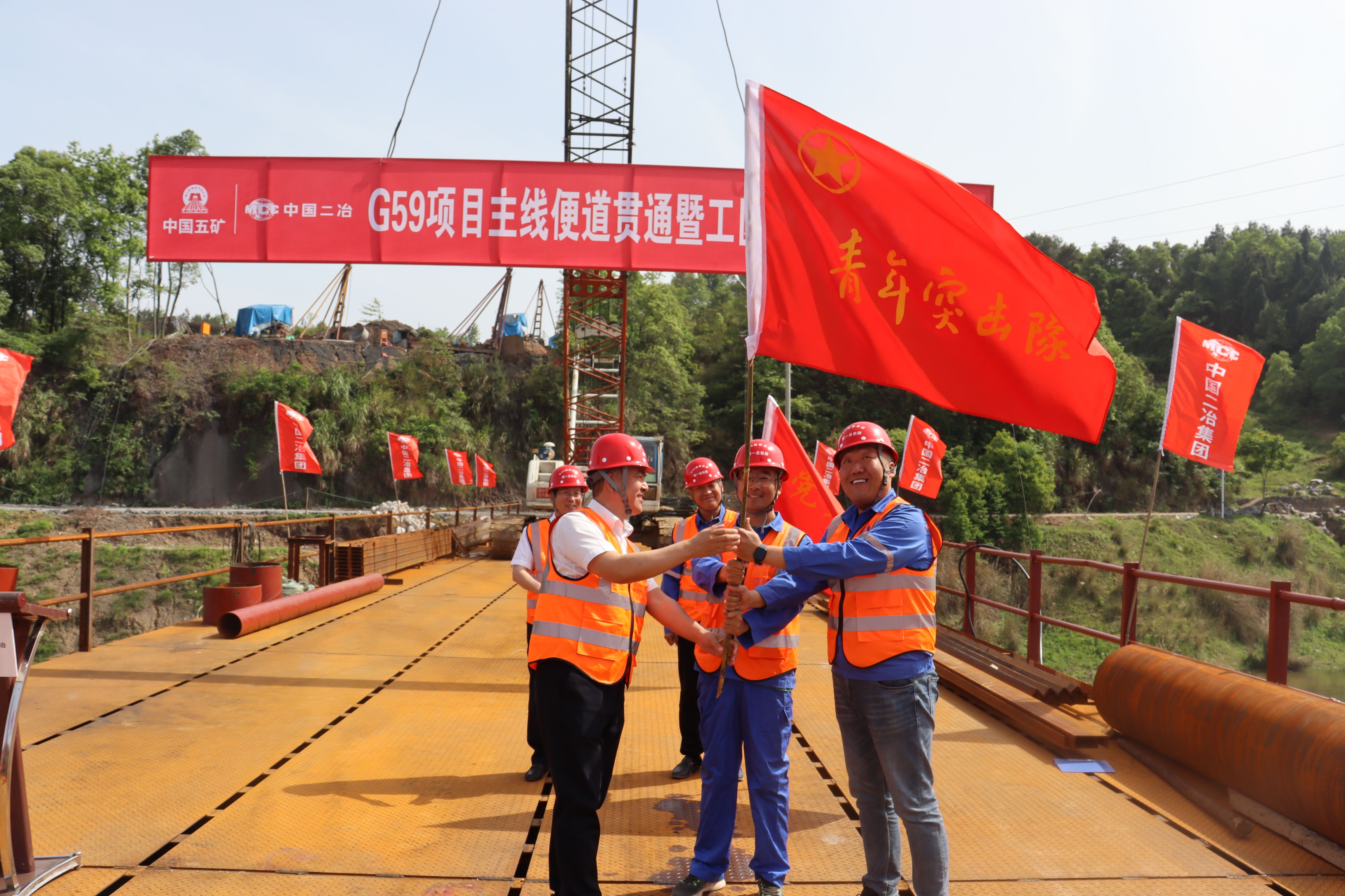 4月30日,路橋分公司G59新新高速項目“主線便道貫通暨工區(qū)對手賽”啟動儀式暨企業(yè)開放日活動在赧水特大橋鋼棧橋上舉行。分公司黨委書記郭泗東、總會計師王文通及分公司副總經(jīng)理兼G59項目部經(jīng)理張勇參加啟動儀式。業(yè)主單位、監(jiān)理單位、分包單位、政府代表及多家主流媒體記者共計70余人參加活動。