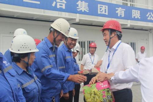 高文華首先對(duì)工作在一線員工們的辛勤工作表示感謝和崇高的敬意,聽取了項(xiàng)目負(fù)責(zé)人的工作匯報(bào),并與大家親切交談,詳細(xì)了解員工們的工作生活情況,鼓勵(lì)所有員工,增強(qiáng)集體榮譽(yù)感和責(zé)任心,用奮斗譜寫二冶建設(shè)新篇章,并為他們發(fā)放了月餅、水果等節(jié)日禮物,勉勵(lì)他們要不忘初心、牢記使命、勇?lián)厝巍8呶娜A指出,在中秋和國慶“兩節(jié)”來臨之際,公司許多員工依然堅(jiān)守工作崗位勤懇奉獻(xiàn),正是“一天也不耽誤,一天也不懈怠”的企業(yè)精神,中國二冶才跑出了發(fā)展的“加速度”,公司對(duì)廣大員工及其家屬的辛勤付出與大力支持表示衷心感謝。