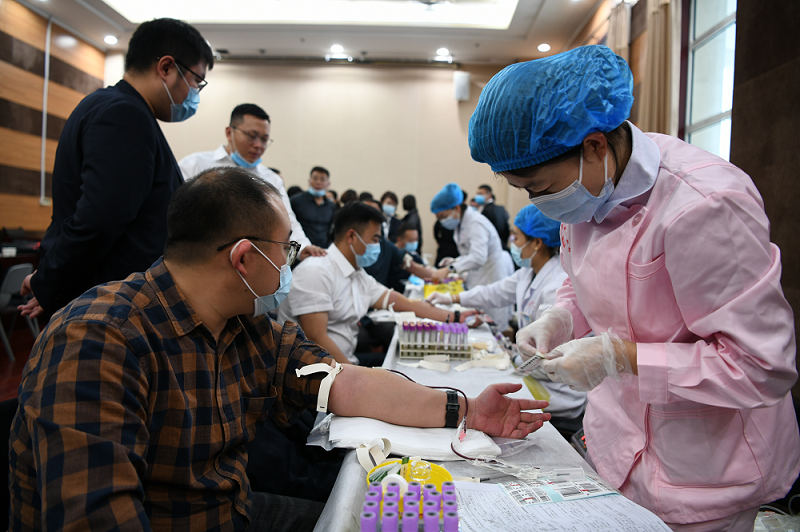 在活動現(xiàn)場,前來獻血的職工絡(luò)繹不絕。在工作人員的組織下,大家按疫情防控要求,分隊列、分批次踴躍獻血,按順序進行了領(lǐng)表登記、血型測定、體檢、抽血和觀察休息,活動現(xiàn)場秩序井然。獻血過程中,有常年堅持無償獻血的“獻血模范”,也有初次參加無償獻血的“新鮮力量”,大家紛紛表示,能以無償獻血這種方式向社會傳遞正能量,感到特別有意義。當大家完成獻血時,他們臉上都露出了欣慰的笑容。